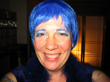 Halloween party @ B&W's was fab. My costume wasn't all that special, but I did get the requisite number of doubletakes. (For those who missed it, when I got home I decided I really wanted a picture of myself in the blue wig. The effect was a little more interesting before the blue lipstick wore off, but me with short, straight, blue hair is just kind of... different :) Haven't yet decided whether to reprise the costume at work tomorrow...